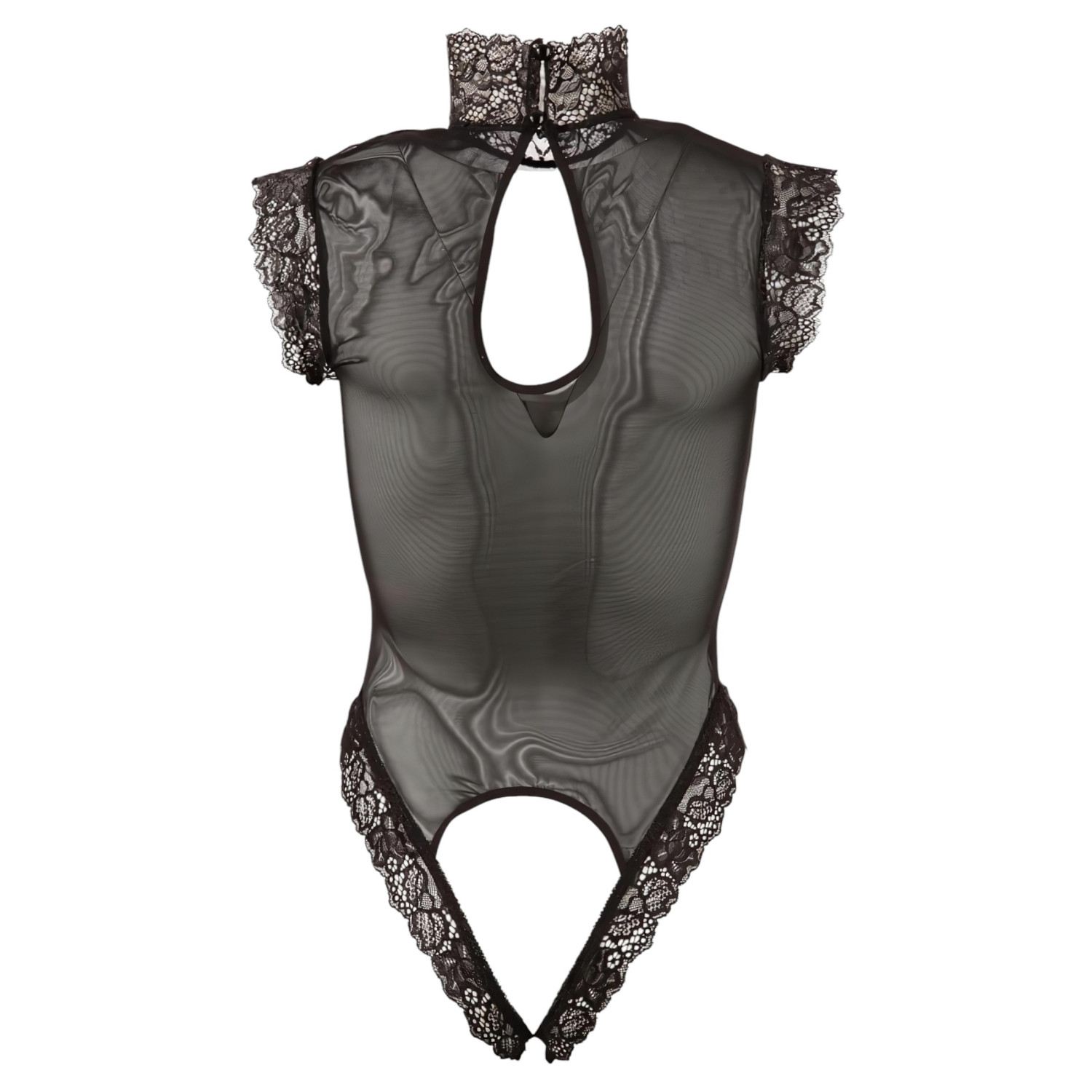 Atemberaubend sexy, schwarzer, transparenter Body mit Spitzenapplikationen und gewagtem, offenem Design! Abierta Fina - Pikante Sinnlichkeit - Body