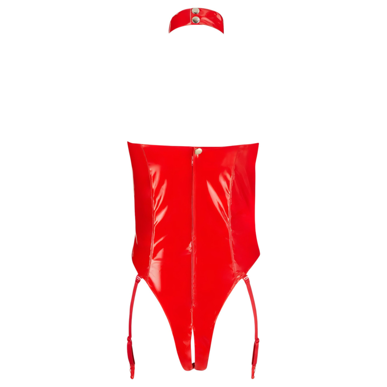 Verführerischer roter Body, der Brust und Intimbereich freilässt!