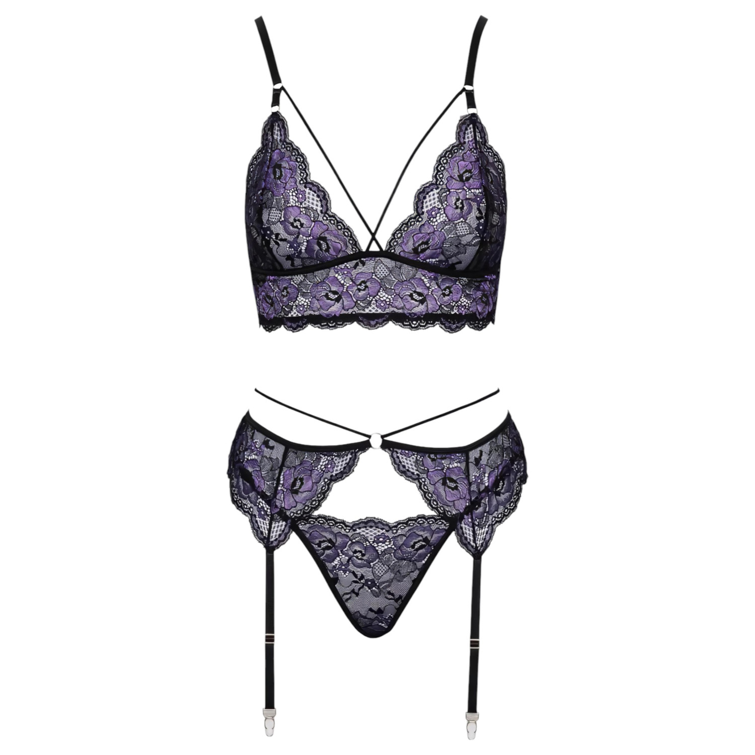 Lass deine Sinnlichkeit mit diesem wunderschönen 3-teiligen Spitzen-Dessous-Set frei - die feinen Details sorgen garantiert für bewundernde Blicke!