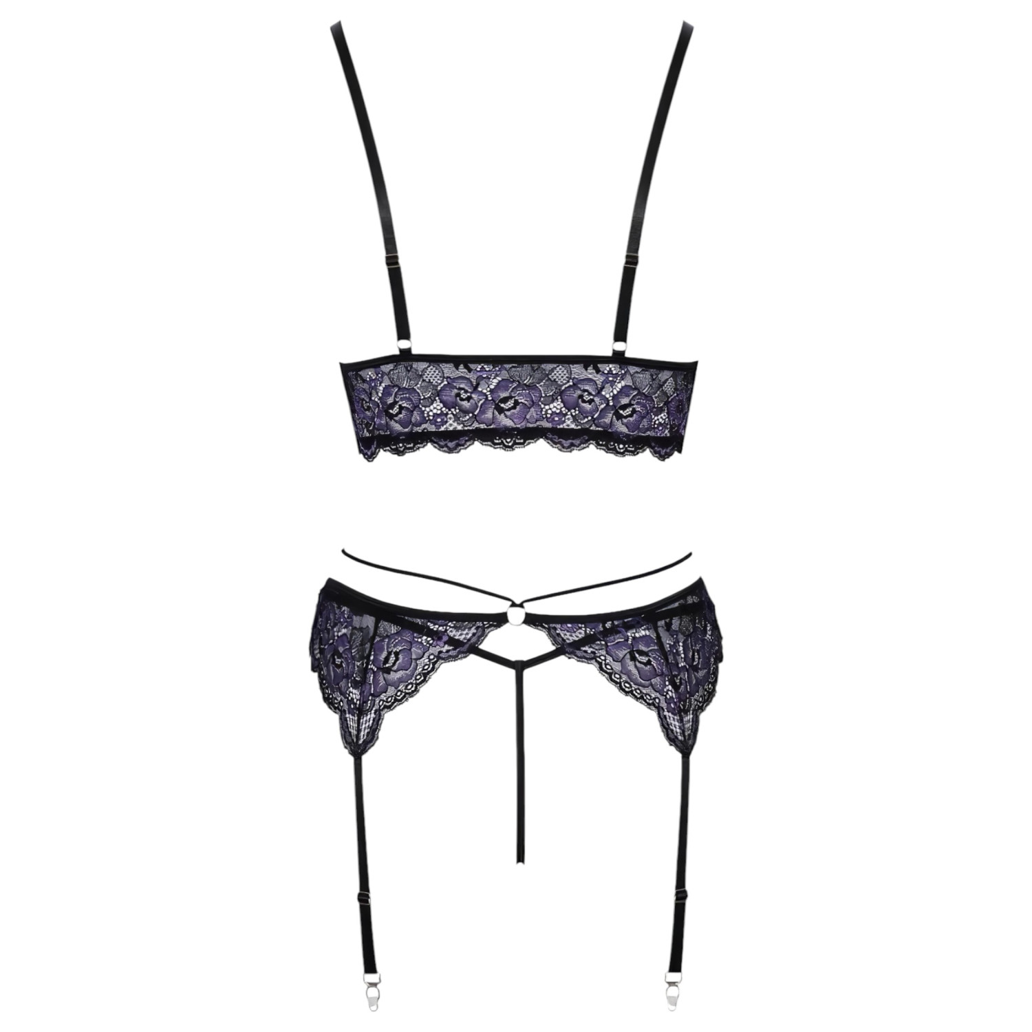 Cottelli - 3-teiliges Spitzenwäsche-Set (schwarz-violett) - XL