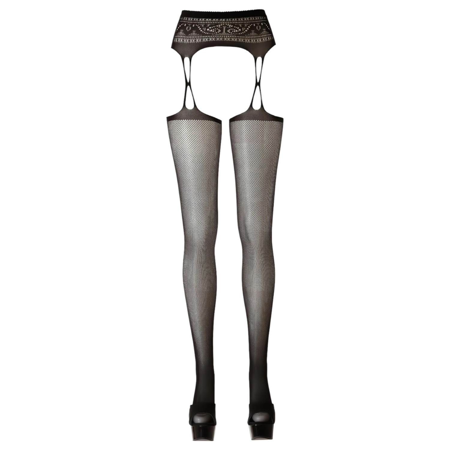 Cottelli - gemusterte Netzstrümpfe (schwarz) - L/XL