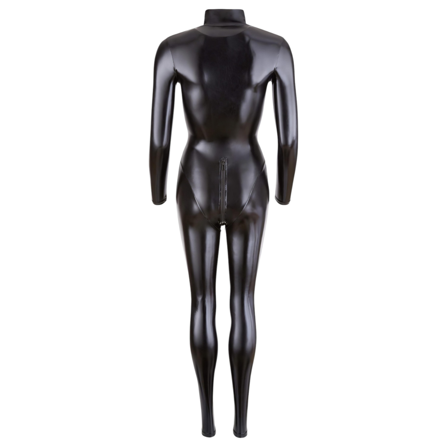 • 1 x glänzender, schwarzer Overall mit 2-Wege-Reißverschluss