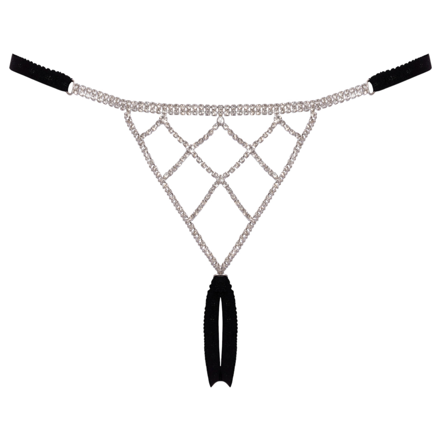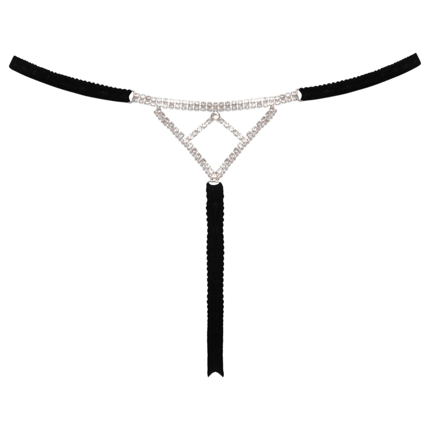 Cottelli LINGERIE – Luxus, funkelnder Strass, offen geschnittener schwarzer Tanga (S–L)