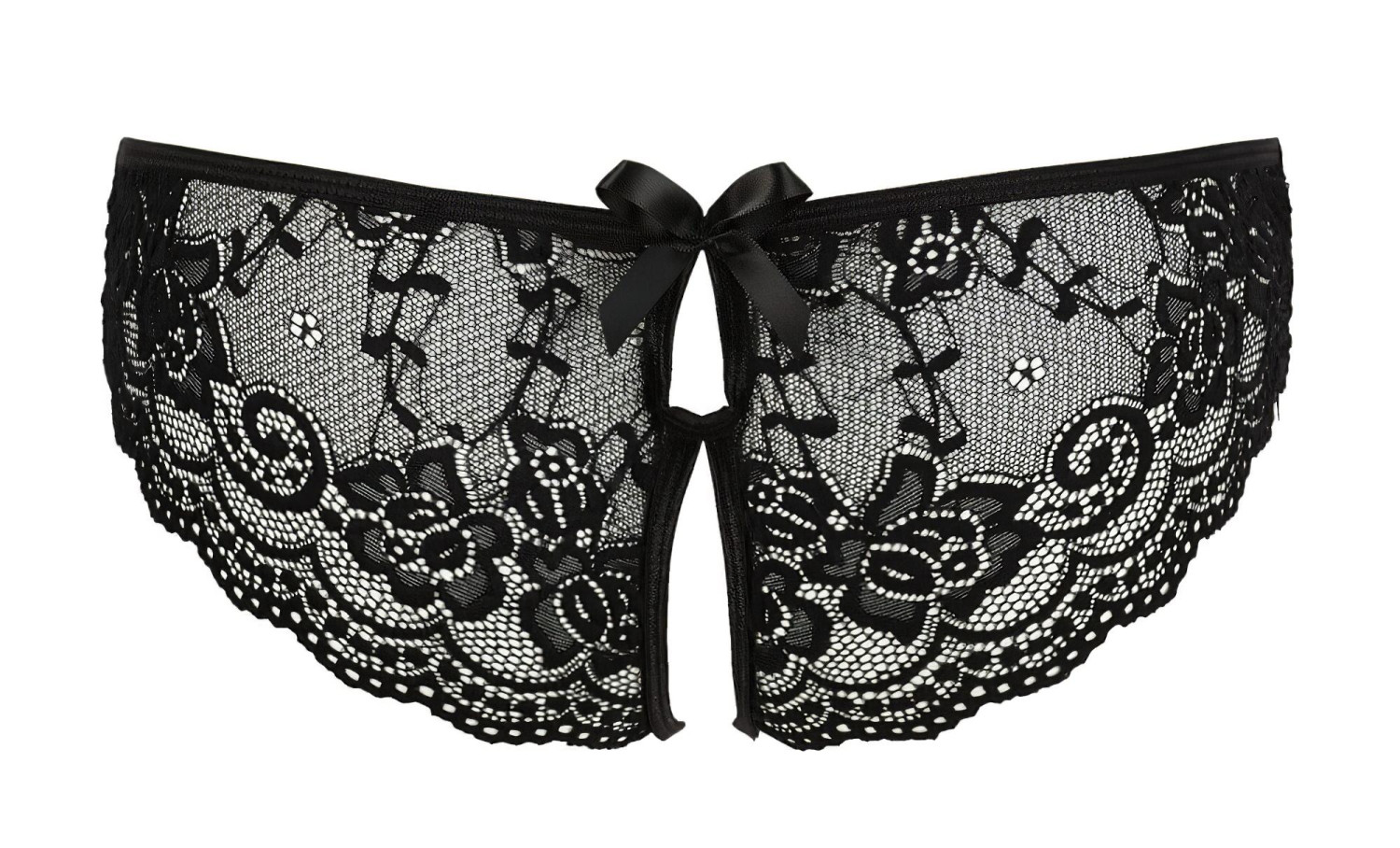 Cottelli - Spitzen-Slip mit Schleife und offenem Schritt (schwarz)