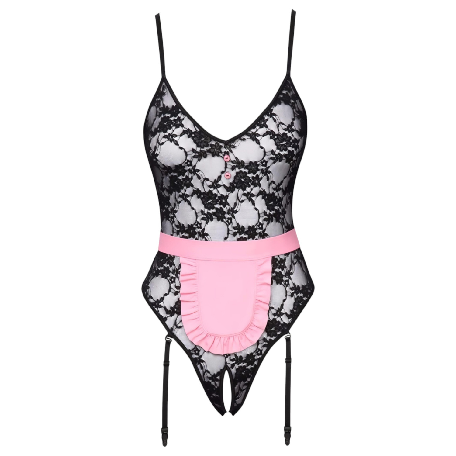 Cottelli - Transparente Dienstmädchenkostüm (schwarz-pink) - M