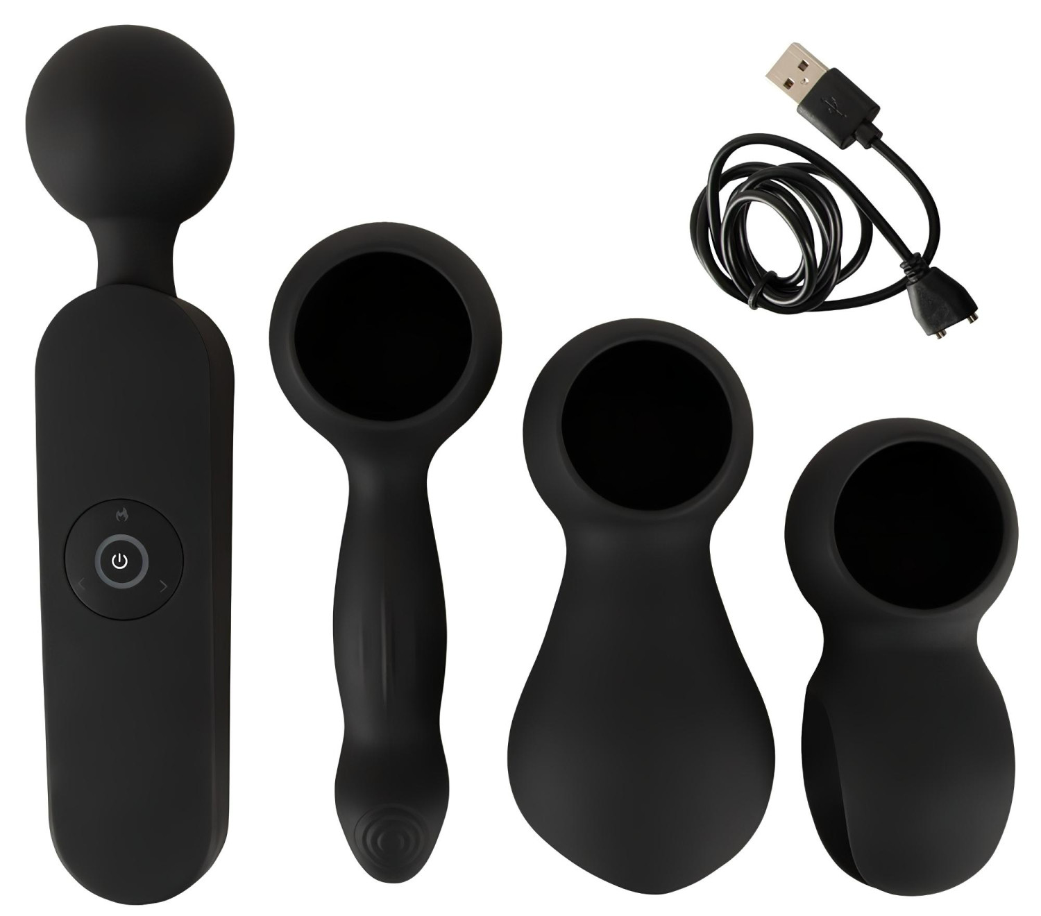 Kräftiger Massagevibrator mit starkem Motor und 3 verschiedenen Aufsätzen.