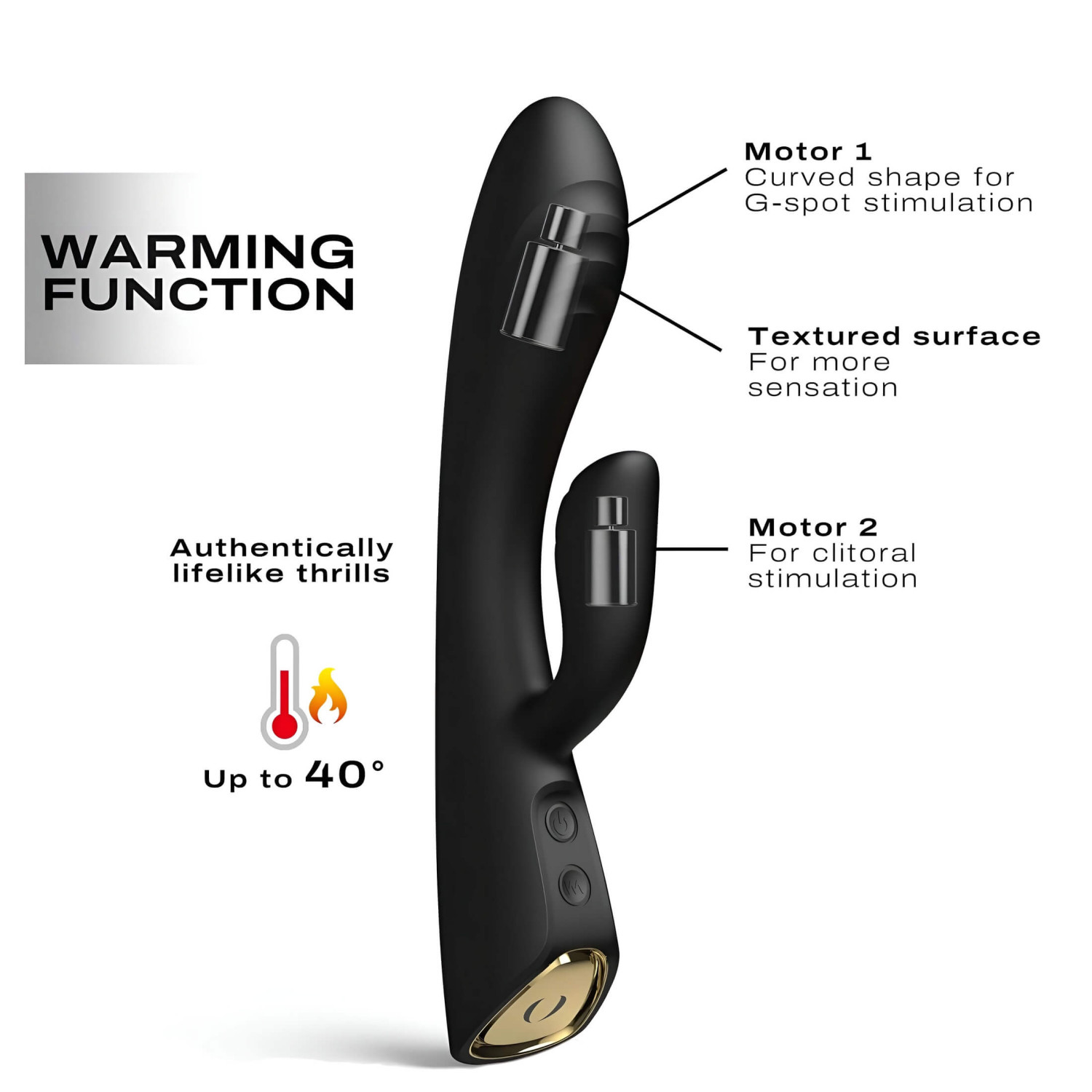 Ultra-flexibler Vibrator mit Klitorisstimulator, zwei Motoren und Heizfunktion - für ein noch realistischeres Lustgefühl!