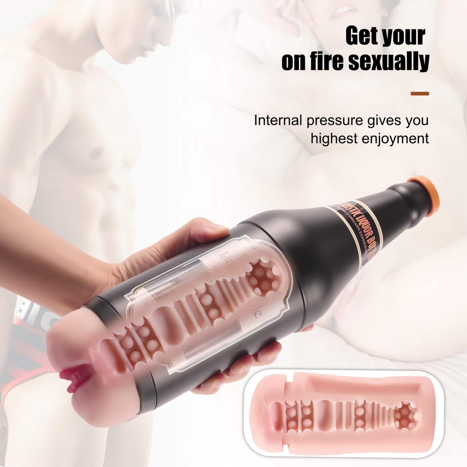 Extrem weiche, seidig-glatte Masturbator-Vagina, versteckt in einer diskreten Flasche in Bierflaschenform.