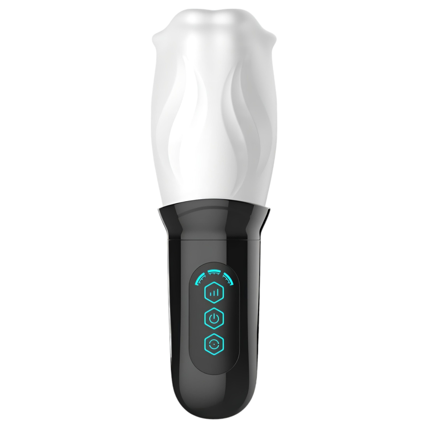 Drehender Masturbator für Männer mit wählbarer Drehrichtung und weichem, stimulierendem Inneren mit sanften Noppen.