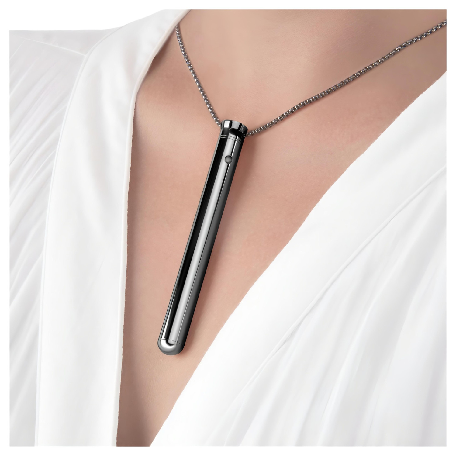 Entdecken Sie die perfekte Kombination von Luxus und Vergnügen mit diesem eleganten, als Halskette tragbaren Vibrator - Stil und Freude in einem einzigen Accessoire!