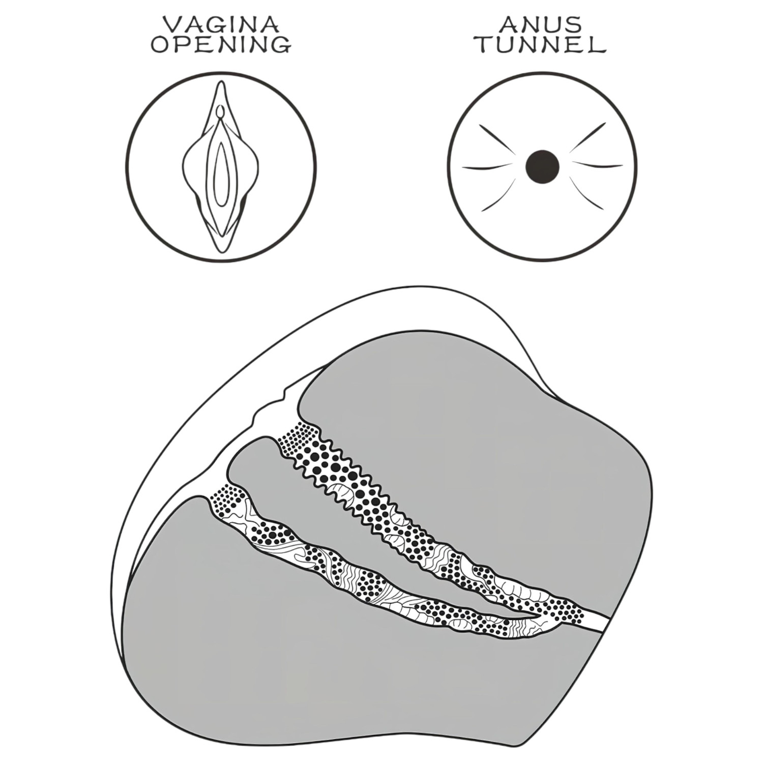 • 2 Lustöffnungen - perfekt geformt und weich, sowie extra enge Vagina und After innen mit abwechslungsreicher stimulierender Oberfläche