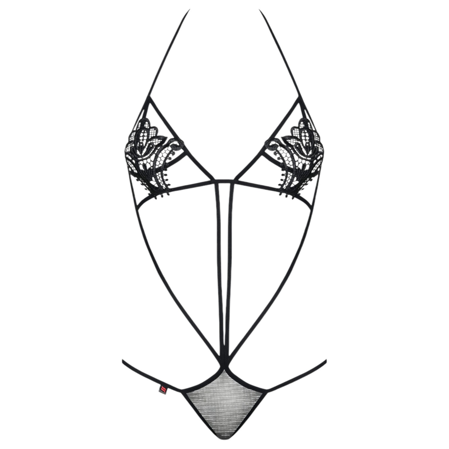 Bewertungen Obsessive Luiza - tulpenförmiger, riemchiger Body - Schwarz (S/M)
