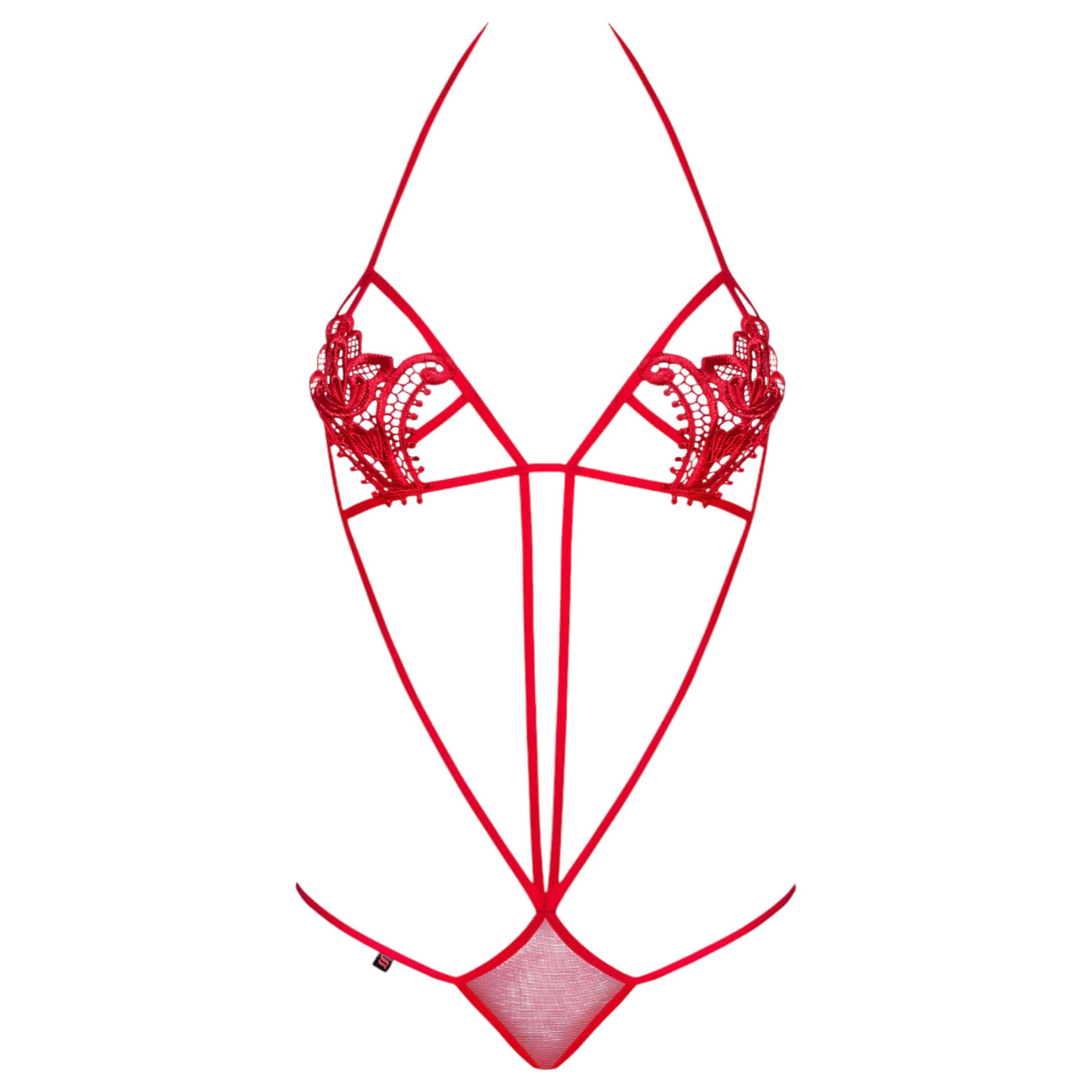 Bewertungen Obsessive Luiza - tulpenförmiger, riemenartiger Body - Rot (S/M)