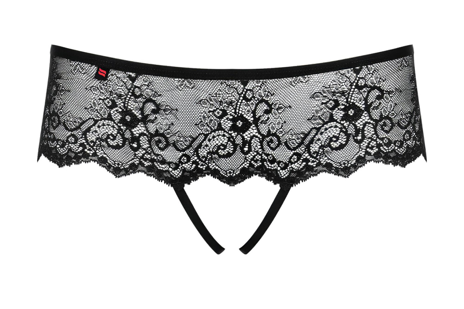 • 1 Spitzen-String im offenen Schnitt mit Strass-Metallschleife hinten