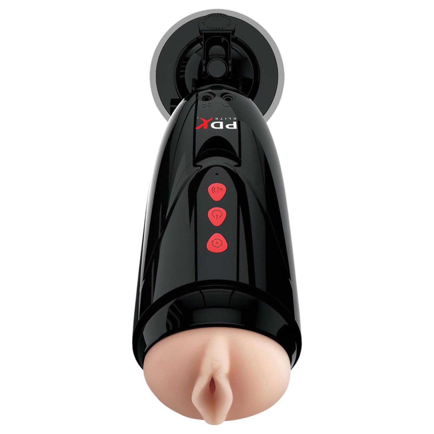 Schau dir das Vorführungsvideo des PDX Elite Dirty Talk - vibrierender Kunstvagina-Masturbator (schwarz) an!