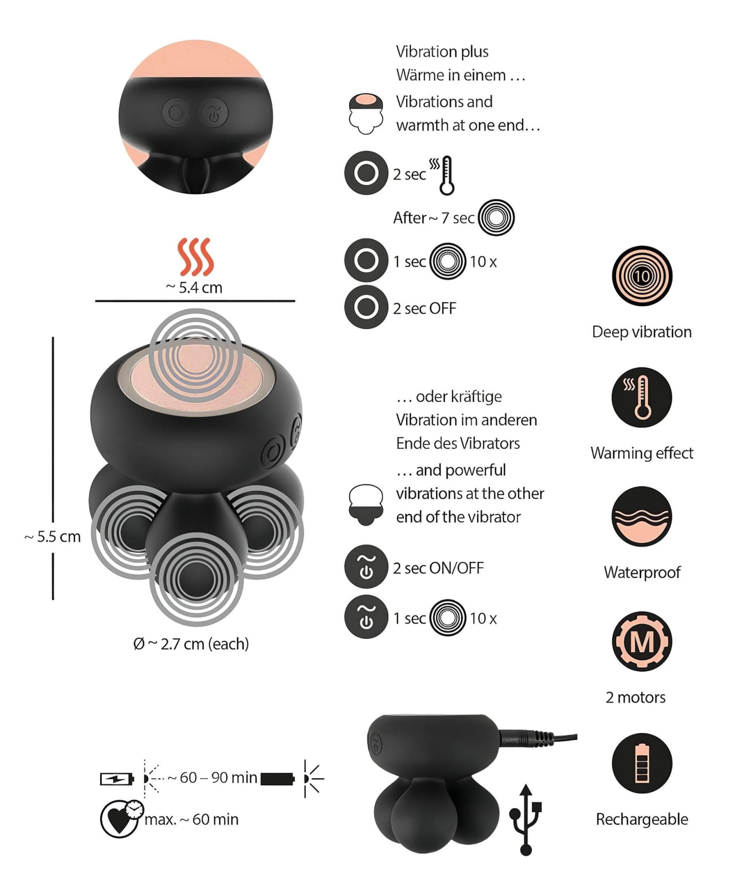 Mini-Massager-Vibrator mit VIER starken Motoren und Heizfunktion.