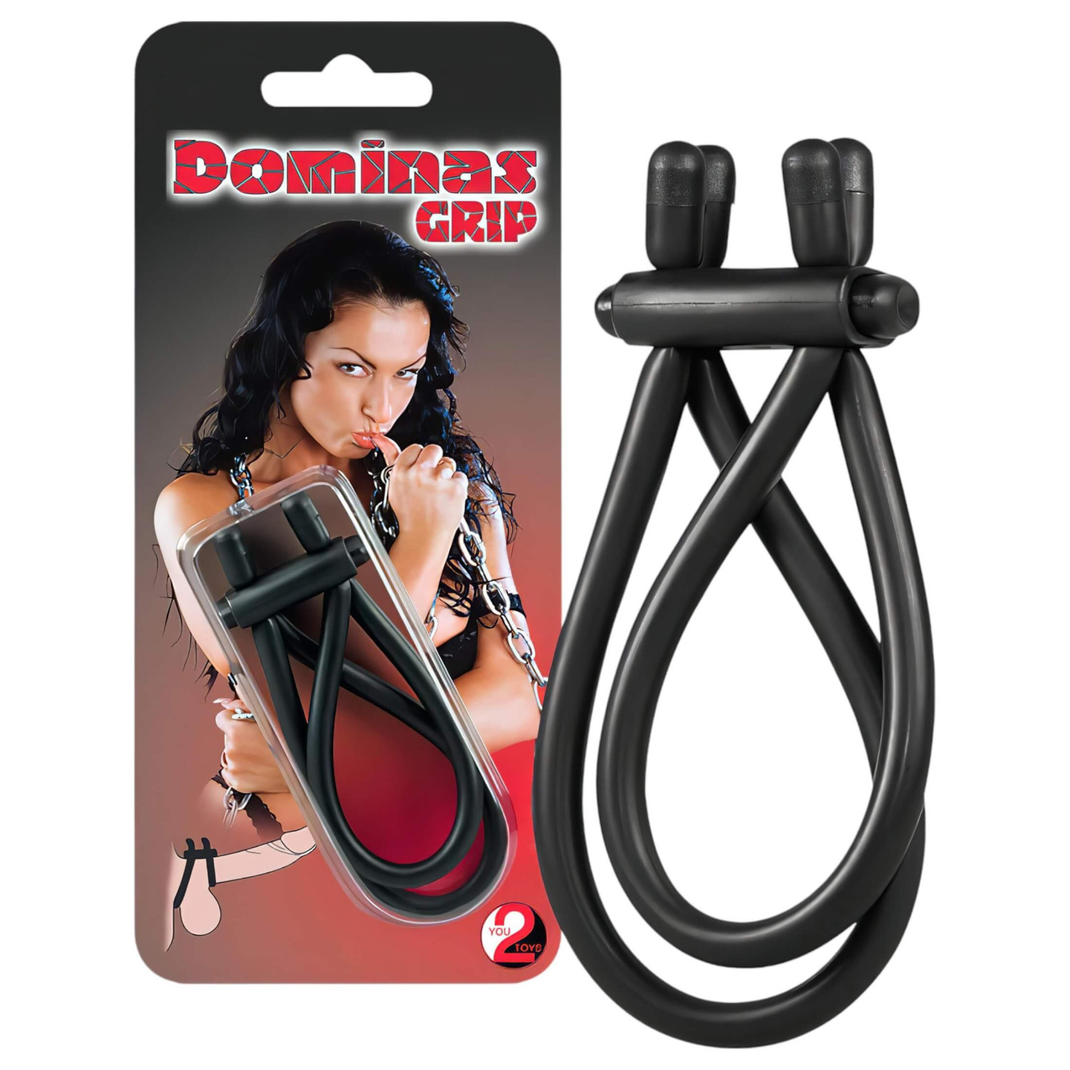 Schwarzer, kräftiger Latex-Doppelring, der Deine Erektion optimal unterstützt. Die Ringe lassen sich über einen praktischen Knopf ganz einfach in der Größe verstellen - so passt das Toy wirklich jedem!
