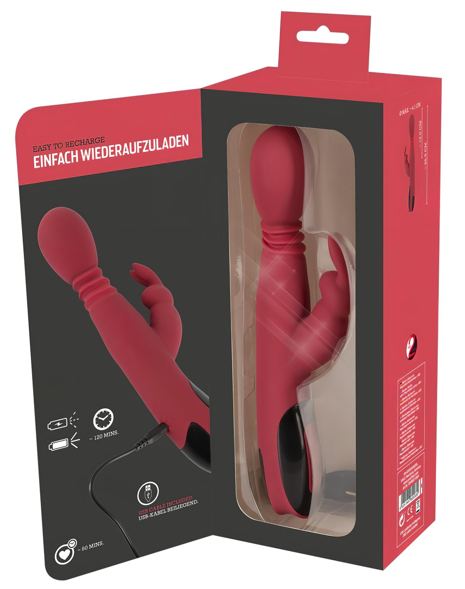 • Alle Funktionen separat steuerbar - 10 Vibrationsarten, 3 Stufen für Stoßen und Rotation - individuell einstellbares Vergnügen.