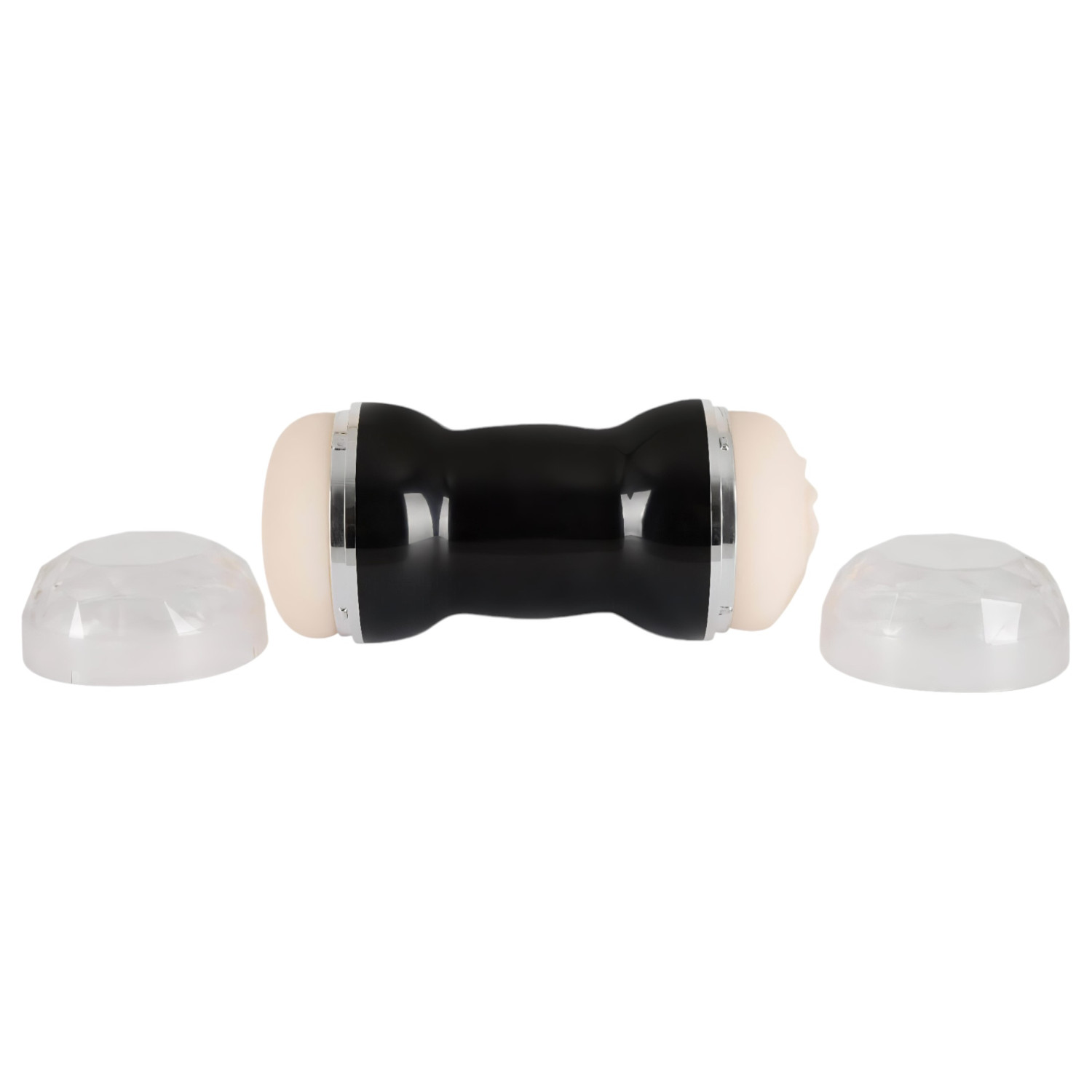 • 1 Masturbator mit zwei Lustöffnungen im schwarzen-silbernen Case
